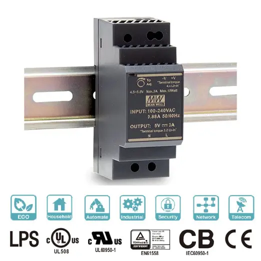 Alimentatore 5V 6A 30W guida DIN per Raspberry HDR-60-5