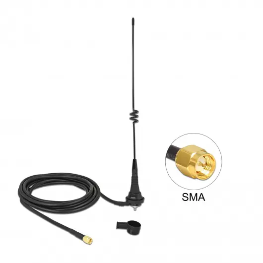 OMNIDIREZIONALE SMA-M 2,5mt OUTDOOR Delock LPWAN 868 MHz Antenna con SMA maschio 4,5 dBi omnidirezionale fissata con cavo di collegamento RG-58 C/U 2,5 m all'esterno nero Questa antenna Delock consente l'utilizzo di bande da 868 MHz in interni ed esterni.