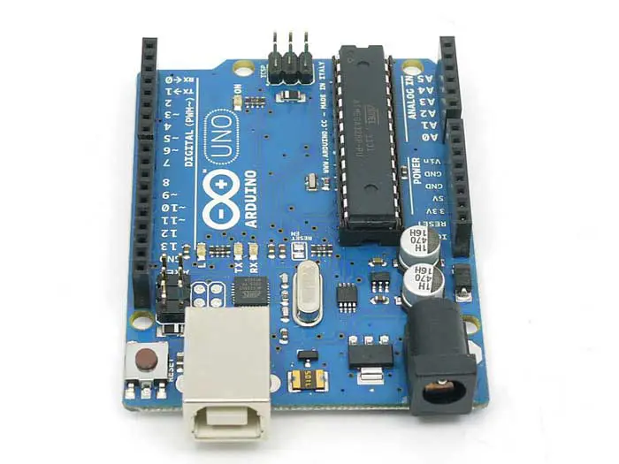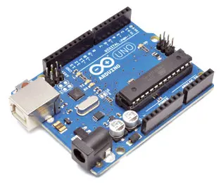 Arduino Uno Rev3 è una scheda elettronica basata sul microcontrollore Atmega328 (datasheet). Dispone di 14 ingressi/uscite digitali (di cui 6 possono essere utilizzate come uscite PWM), 6 ingressi analogici, un cristallo oscillatore a 16 MHz, una connessione USB, un jack di alimentazione, un header ICSP e un pulsante di reset. Contiene tutto il necessario per supportare il microcontrollore; per iniziare basta connettersi a un computer tramite un cavo USB o alimentarla con un trasformatore AC/DC o una batteria. La UNO si differenzia da tutte le schede precedenti in quanto non utilizza il convertitore USB-seriale FTDI ma un microcontrollere Atmega16U2 programmato come un convertitore USB-seriale.