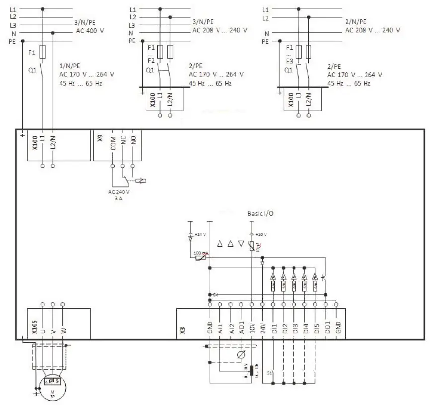Azionamento a velocita variabile monofase 0,4 kW 240V