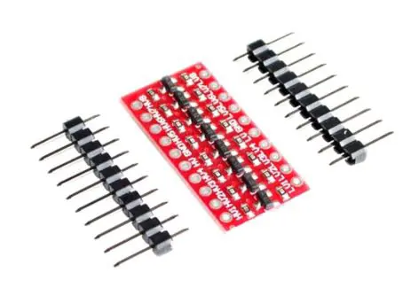 Piccolo dispositivo in grado di convertire livelli logici da 5 V a 3,3 V e viceversa (funziona anche con dispositivi da 2,8 V e 1,8 V). Dispone di 8 pin per il livello alto da un lato e 8 pin per il livello basso dall'altro, con 4 ingressi e 4 uscite per ogni lato. Può essere utilizzato con qualsiasi segnale digitale (seriali, I2C, SPI). N.B. non funziona con segnali analogici. Dimensioni: 28 x 19 mm.