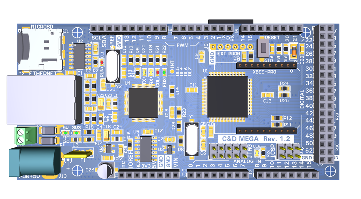 BOARD C&DMEGA ATMEGA2560, COMPATIBILE 100% ARDUINO