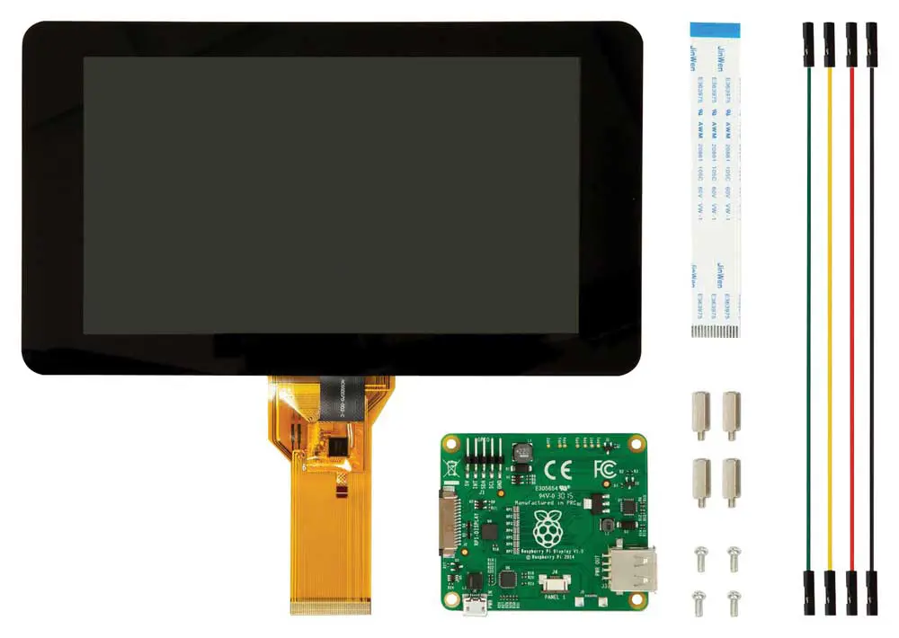 Caratteristiche e vantaggi del touch screen LCD Pi • Multi-touch screen capacitivo - supporta fino a 10 tocchi • Display da 7 pollici • Risoluzione 800 x 480 pixel a 60 fotogrammi al secondo (fps) • Colore RGB a 24 bit • Angolo di visione 70° • Sono richiesti solo due collegamenti • Alimentatore flessibile • Senza interferenze elettroniche • Piena funzionalità del sistema operativo Raspbian senza tastiera e mouse • Software di sviluppo Kivy touch screen disponibile - http://kivy.org/docs/installation/installation-rpi.html