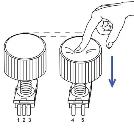 Dispone inoltre di un pulsante n.a. che si attiva quando l'alberino dell'encoder viene premuto verso il basso. Manopola compresa.
