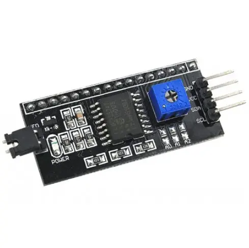 Permette ai display LCD a 16 caratteri con 2 linee, che utilizzano il controller HD44780, di essere controllati tramite interfaccia I²C. Possibilità di collegare in cascata, tramite la saldatura degli indirizzi A0-A1-A2 (predefinito 0x27), fino a otto moduli. Dispone di jumper per attivare la retroilluminazione e regolazione del contrasto che viene effettuata tramite un piccolo trimmer. Particolarmente indicato per ridurre il numero di I/O richiesti in caso di utilizzo con Arduino o altro microcontrollore. Alimentazione: 2,5-6 Vdc, dimensioni (mm): 41,5 x 19 x 15,3, peso: 5 grammi.