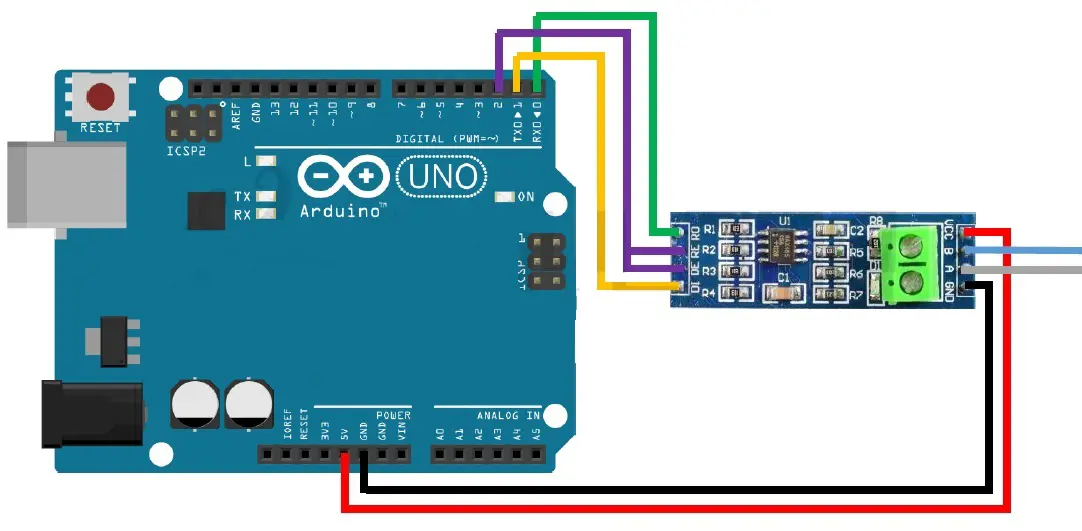 L’alimentazione del modulo è di 5 Volt e utilizza livelli logici a 5 volt che consentono di interfacciarsi alle porte seriali hardware di microcontrollori come Arduino, PIC della Microchip, ecc.