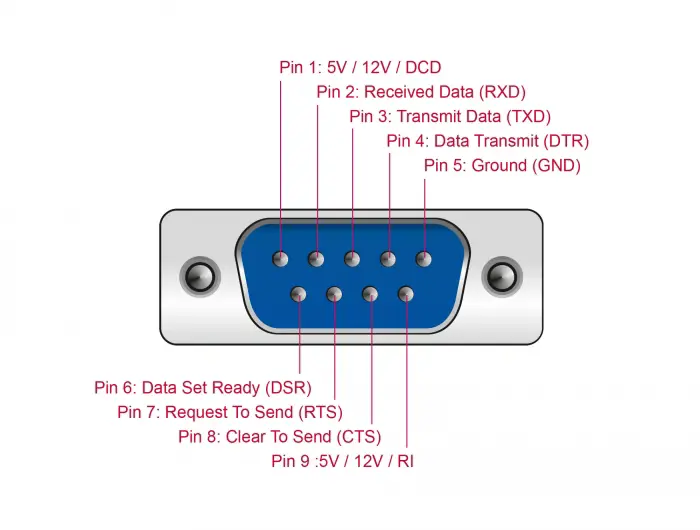 • Segnali: DCD/12V/5V, TxD, RxD, RTS, CTS, DTR, DSR, GND, RI/12V/5V