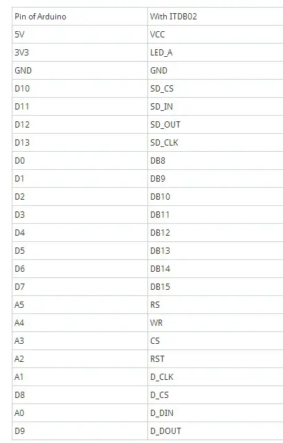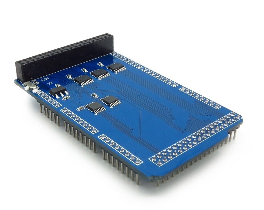 L'arduino MEGA lavora a 5V, mentre gli schermi ITDB02 lavorano a 3.3V dunque incompatibile con le tensioni d’uscita dell’arduino Mega. Lo shield risolve questo problema, interfacciandosi tra lo schermo TFT e la board Arduino.