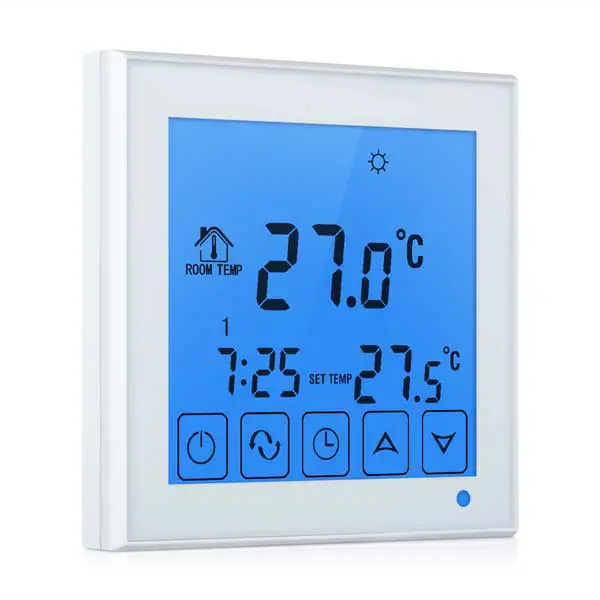 Innovativo termostato Wi-Fi con ampio display touch screen con retroilluminazione. Può anche essere controllato tramite apposita App installata su smartphone Android o iOS (scaricabile dal proprio store). Permette di controllare il riscaldamento di termosifoni e/o valvole motorizzate, valvole termiche, valvole a solenoide.