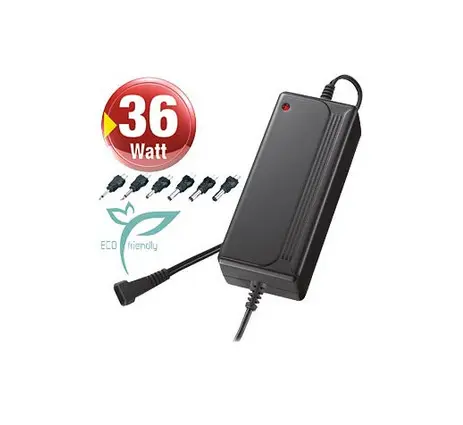 Tensione di uscita: 5,0/6,0/7,5/9,0/12/13,5/15 V c.c. -- Prestazioni: 36 W -- dimensioni: 110 x 50 x 30 mm