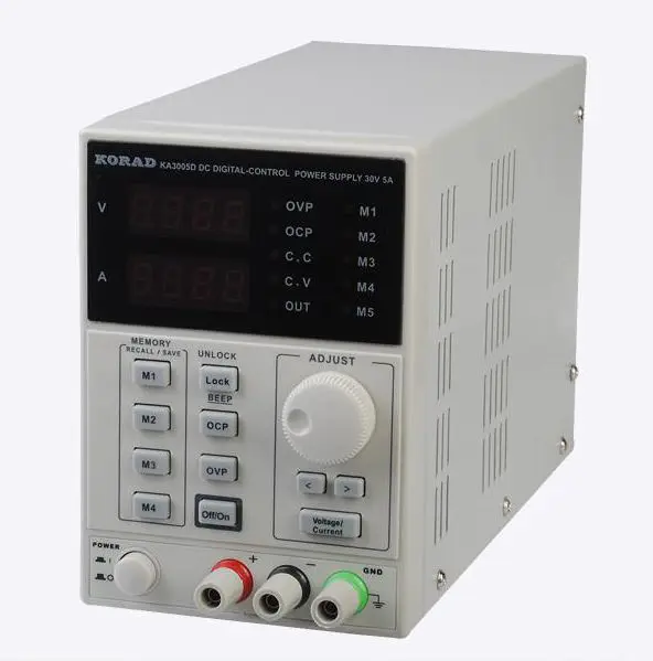 KA3005D - LIN. di PRECISIONE-4DIGIT+MEM Features: Compact Design Dual 4 Digit LED Displays Digital Controls Output switch control Switchable between 110v and 220v 4 sets of parameters can be stored inside for fast recall Keyboard Lock to prevent accidental changing of set parameters Circuit protection for over load, short circuit and over temperature. Automatic switching between mA and A display Quiet variable speed fan 1 Year Warranty!