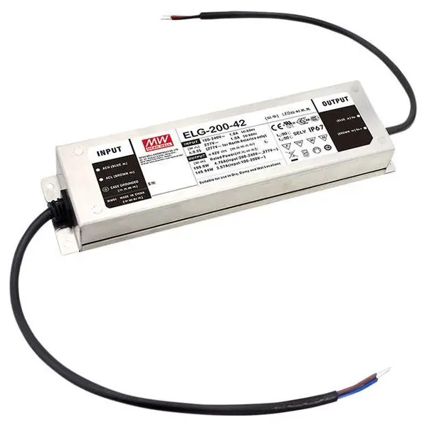 Tensione di uscita DC max. 12 V Tensione di uscita DC min. 6 V Corrente di uscita 16 A Tensione di alimentazione AC max. 305 V Tensione di alimentazione AC min. 100 V Tensione di alimentazione DC max. 431 V Tensione di alimentazione DC min. 142 V Uscite 1 Serie ELG Regolabile No Grado di protezione IP67 Tempo medio tra due guasti (MTBF) 826700 h Tipo di terminazione Connessione a filo Ripple e rumore (V) 150 mV Temperatura di esercizio, max. 90 °C Temperatura di esercizio, min. -40 °C Larghezza 71 mm Altezza 38 mm Lunghezza 244 mm