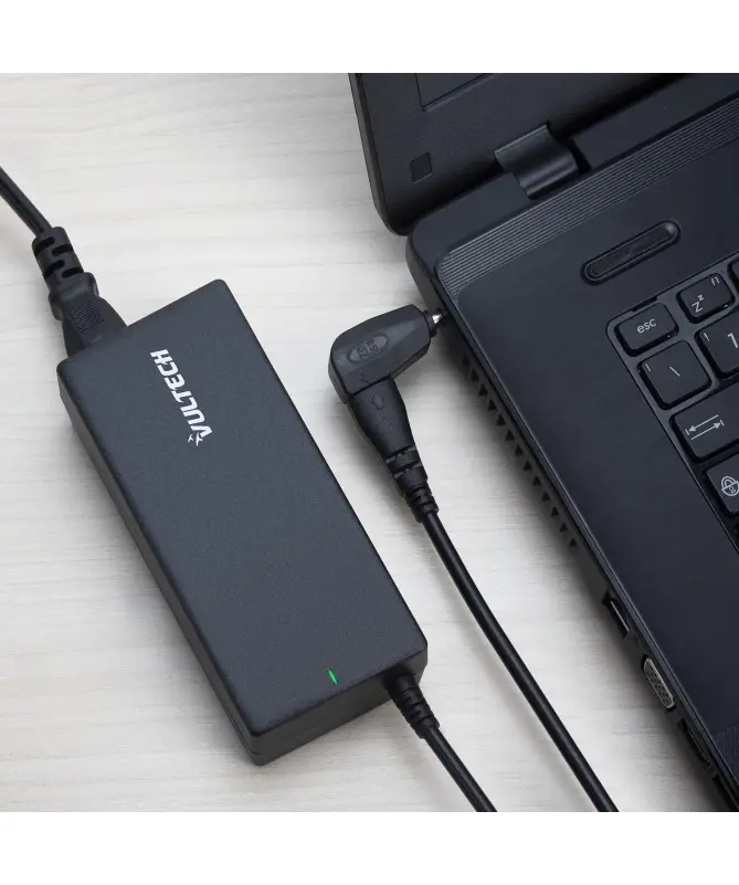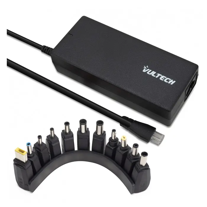 Alimentatore universale VulTech® AU-120W Rev. 2.5 è realizzato per alimentare qualsiasi notebook che necessiti di una potenza di carica massima di 120W. Questo prodotto è autosettante, ovvero in grado di impostare automaticamente il corretto amperaggio e voltaggio per l'alimentazione del notebook. E’ dotato di 11 connettori intercambiabili in modo da garantire la piena compatibilità con tutti i notebook. In base al tipo di connettore, l'alimentatore imposta la giusta tensione in uscita. In questo modo, il notebook è protetto da tensioni eccessive o non propriamente indicate per esso.