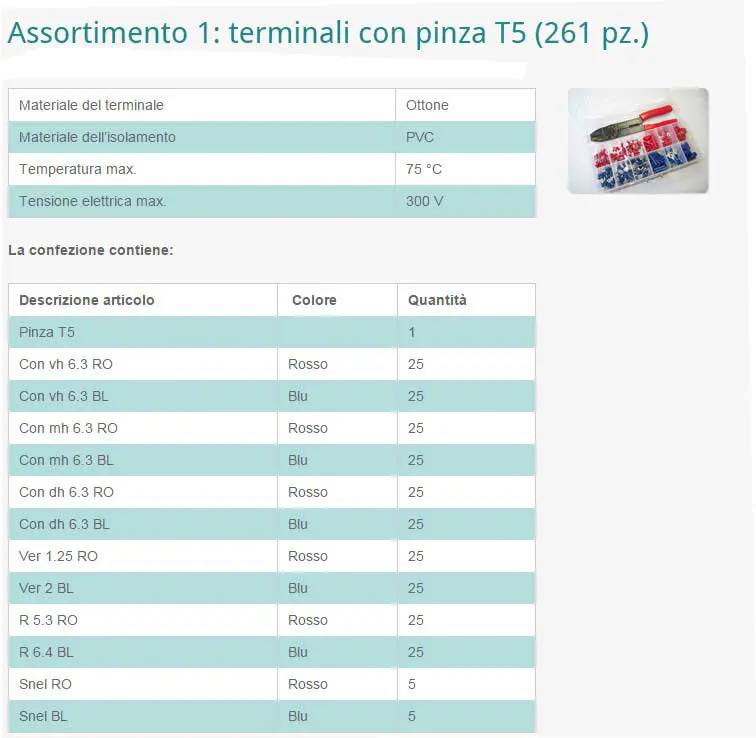 Assortimento (261 pz.) capicorda + pinza T5