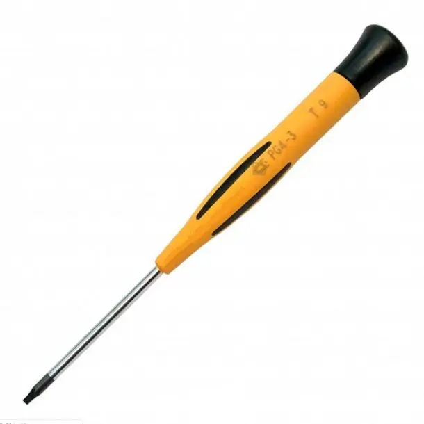 Cacciavite in miniatura per elettronica TORX con misura TX7 x 50 mm. Lunghezza totale 115 mm. e diametro 3,5 mm. Materiale isolante in PVC ed impugnatura ergonomica.