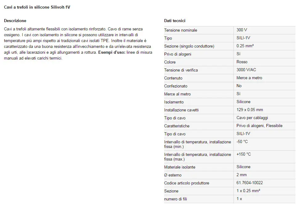 Cavo SILIVOLT-1V 0.25mmq rosso HCK