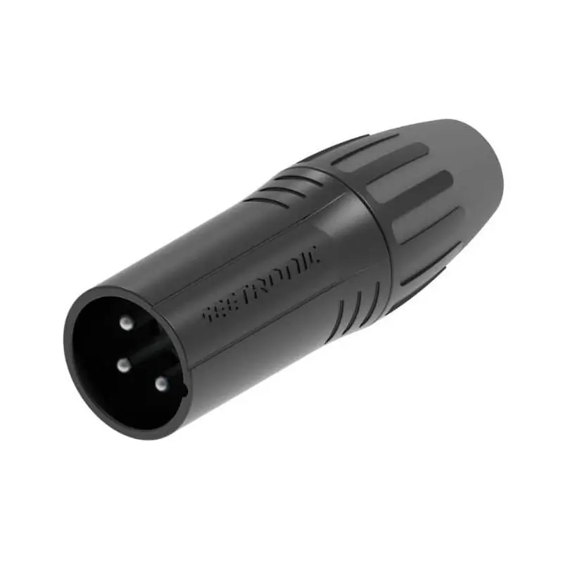 - Connettore maschio XLR a 3 conduttori con alloggiamento placcato nero e contatti placcati argento