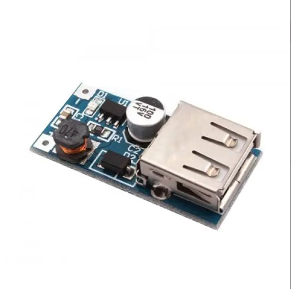 Convertitore DC/DC step-up dalle dimensioni particolarmente ridotte (34 x 16,2 x 8 mm), in grado di convertire una tensione continua in ingresso, compresa tra 0,9 e 5 volt, in una tensione di uscita a 5 volt disponibile tramite connettore USB femmina. Collegando all'ingresso del convertitore due batterie tipo AA, la corrente di uscita sarà di circa 500-600 mA, mentre con una singola batteria AA la corrente di uscita sarà di circa 200 mA. Può essere utilizzato per ricaricare la batteria di telefoni cellulari, fotocamere, ecc.