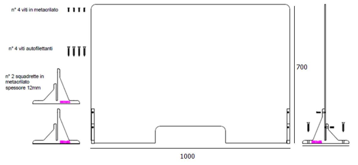 Dispositivo di distanziamento e protezione 1000x700 mm.
