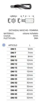Distanziale 3MA esagonale M-F 12mm. DM12