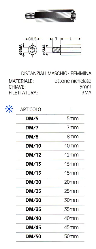 Distanziale 3MA esagonale M-F 15mm. DM15