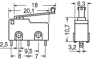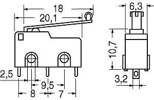 Finecorsa 3A 125V a levetta 28 gr contatti a saldare