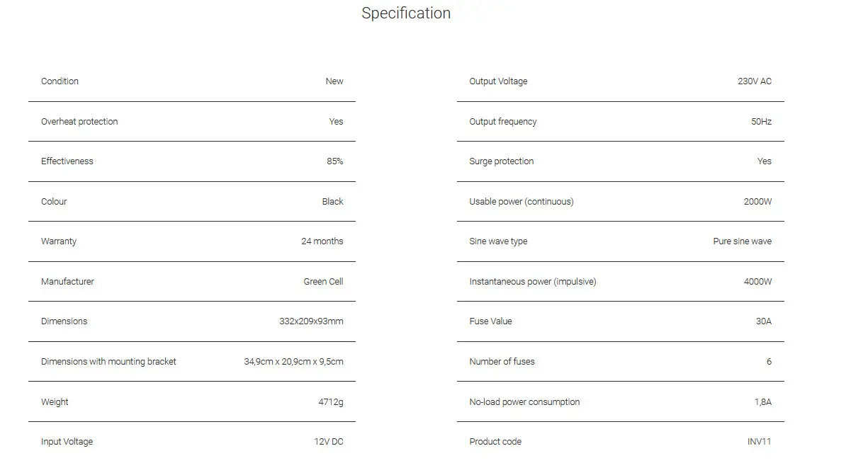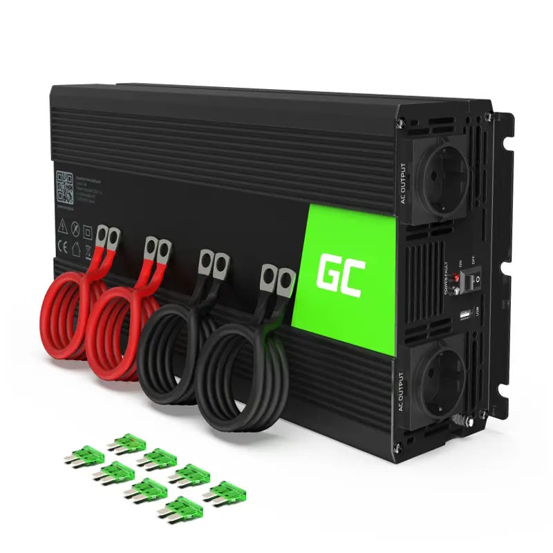 Stay connected - Car inverter is a device that allows you to use electronic devices wherever you are, even when away from the power source Versale and adaptable - Green Cell inverter is not only equipted in sockets to which you can connect electrical devices, but it also has a USB port suitable to charge smaller gadgets such as a smartphone or a tablet Safety at all times - our Green Cell inverter has a number of protections and certifications against overvoltaging, to make sure your devices not only run smoothly but also assures safety Pure sine wave - works perfectly with devices that require continuous power supply identical to the one in the socket. These include laptops, refrigerators, TV sets and the most sensitive ones - solar panels, stoves and central heating pumps