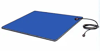 Kit tappeto antistatico colore grigio per postazione di lavoro ESD. Comprende tappeto antistatico grigio 600x1200 mm. con 1 bottone automatico 10 mm., modulo di messa a terra (3 attacchi automatici 10 mm.) e cavetto di interconnessione nero da 25 cm.