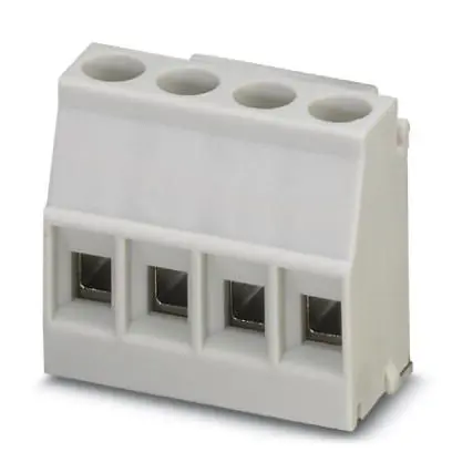 Morsetto per circuiti stampati, corrente nominale: 24 A, passo: 5 mm, numero poli: 4, collegamento: Connessione a vite con gabbia, montaggio: Saldatura ad onde, direzione di collegamento conduttore/scheda: 0 °, colore: grigio chiaro. Articolo con uscita pin laterale
