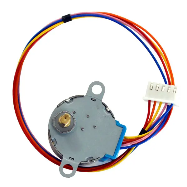 Fili: 5 Fasi: 4 Diametro: 28mm Diametro albero: totale 5 millimetri, 3 mm dopo il taglio bordo Tensione di lavoro: 5V Angolo passo-passo: 5.625 × 1/64 Rapporto di riduzione: 1/64 Terminali: rosso comune, A, B, C, D 4 fasi