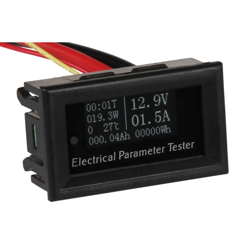 Measuring range: 0 - 99,9V / 0 - 20A / 0 - 2000W / 0 - 9999kWh 0 - 9999,9Ah / 0 - 99h 59min / 10 - 65°C