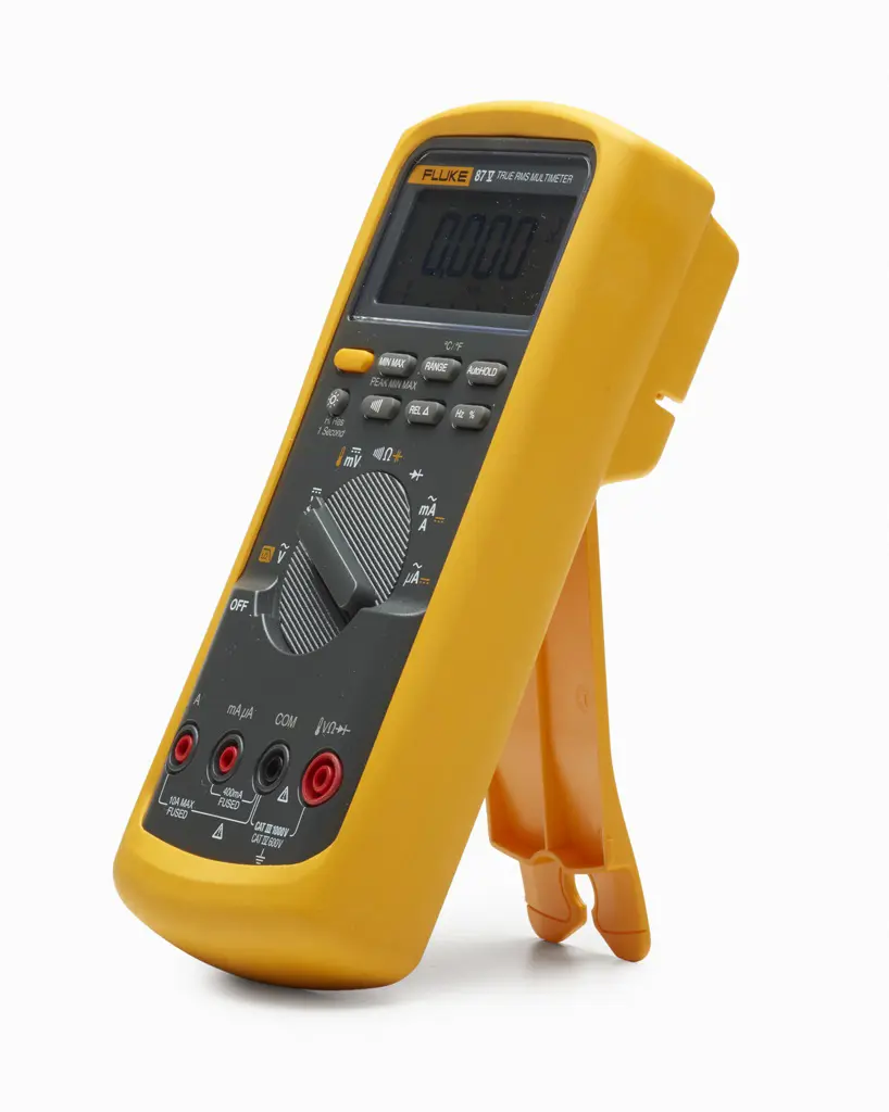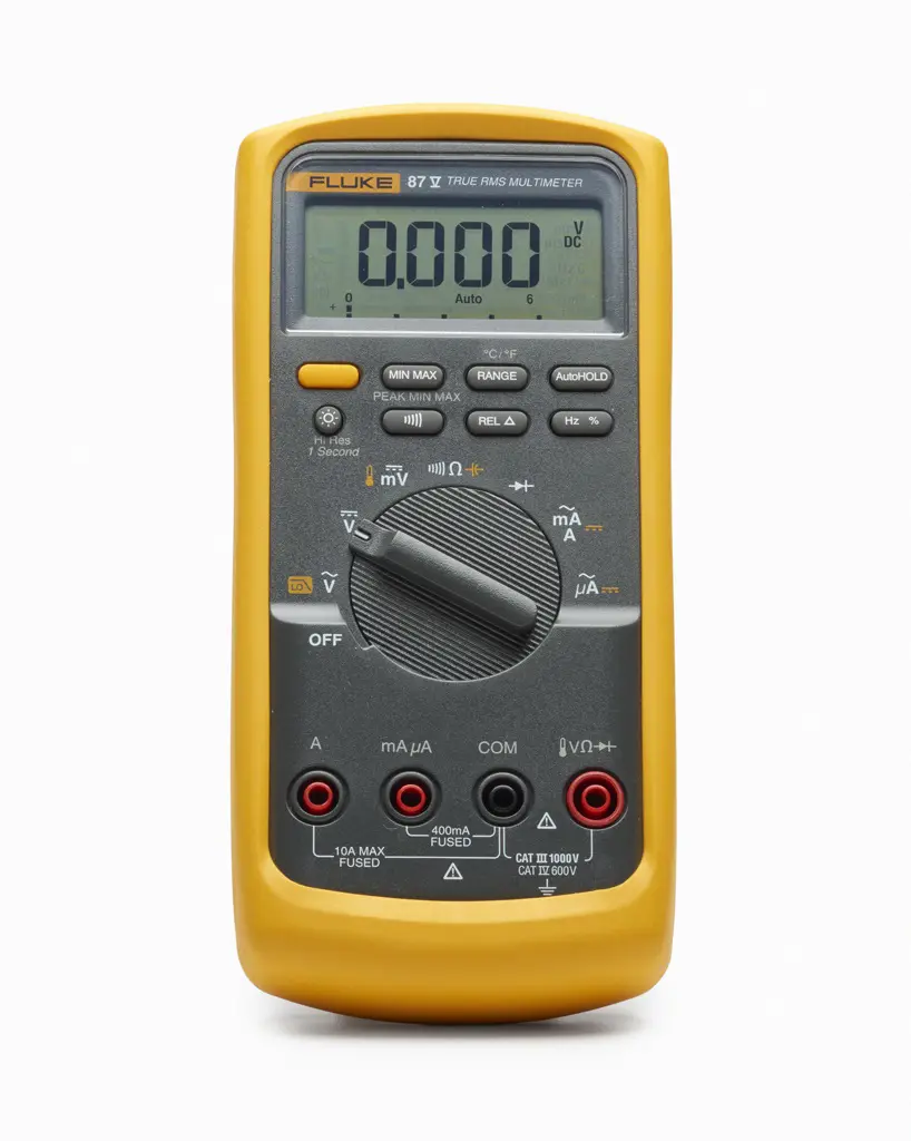 Il multimetro digitale industriale a vero valore RMS Fluke 87-5 è caratterizzato da funzioni migliorate per le misurazioni e per la ricerca guasti oltre che da una maggiore risoluzione e precisione, per aiutare l’utente a risolvere i problemi sui motori e sulle apparecchiature di automazione degli impianti, di distribuzione dell’energia e sui dispositivi elettromeccanici.
