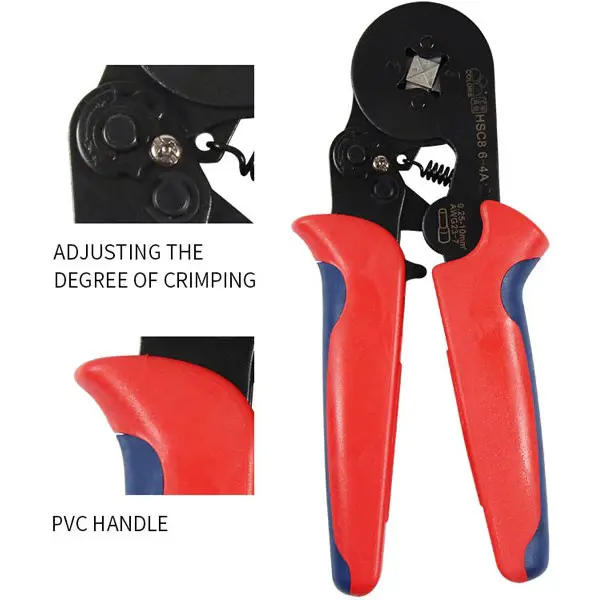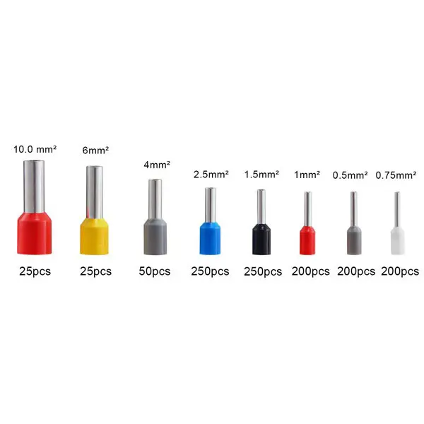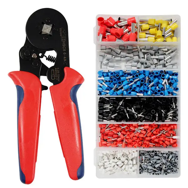 Set contenente una pinza crimpatrice per cavi da 0,25 mm² a 10 mm² e 1.200 terminali a puntale di varie misure.