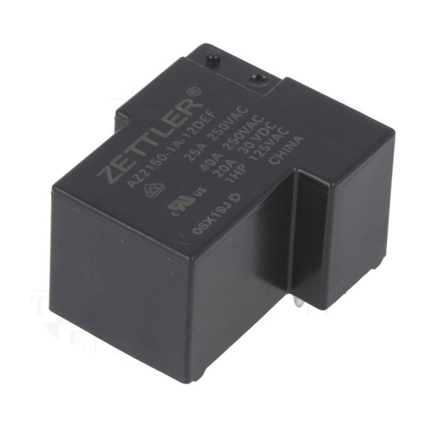 Features: - 30 Amp switching capability - 1 Form A contact - DC coils 12 VDC - Life expectancy to 10 million operations - Class F (155°C) - Epoxy seal for automatic wave soldering and immersion cleaning - Proof Tracking Index (PTI/CTI) 175 - UL, CUR file E44211 including versions meeting UL 508 and UL 873 spacing and contact