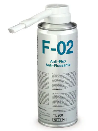 F-02 è un efficace detergente per qualunque tipo di componente elettrico ed elettronico.