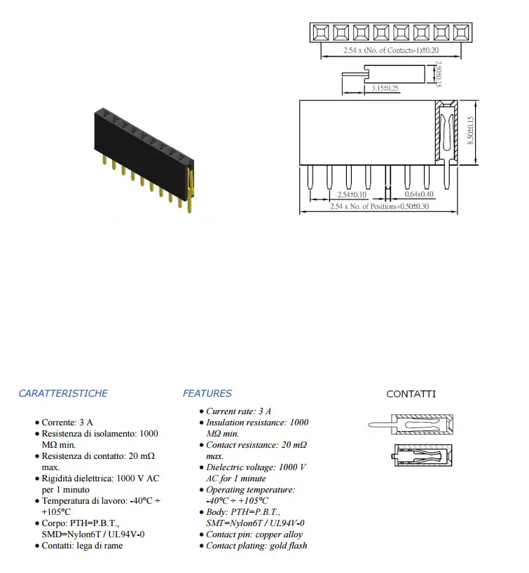 Striscia 10 PIN F. DIR. 2,54 mm.