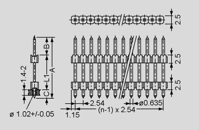 Tipo di connettore Strip-line Genere di connettore maschio Quantità di pin 20 Versione del connettore a piani Orientamento spaziale dritto Spaziatura dei contatti 2.54mm Montaggio elettrico THT Sistema di uscite del connettore 1x20 Altezza totale 29mm (A) vedere disegno tecnico