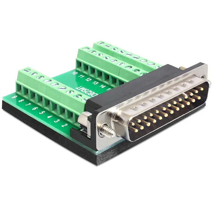 This Sub-D to terminal block adapter is made for special industrial application e.g. for connecting single wires with open cable heads. It also can be used in the hobby area for example for model railroading.