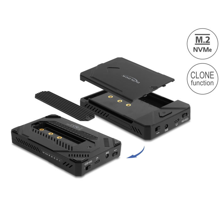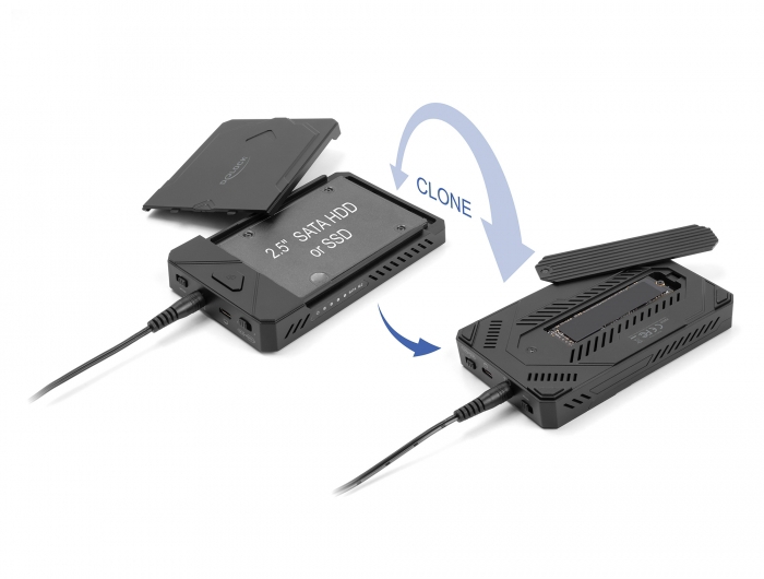 Delock Custodia USB Type-C™ per 1 x SSD M.2 NVMe + 1 x SSD / HDD SATA da 2.5" con funzione di clonazione
