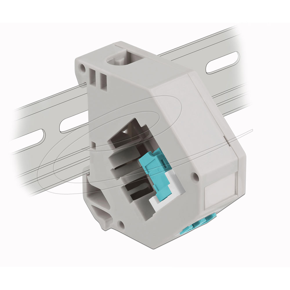 DUPLEX- DIN 1 MODULO 35mm Questo adattatore Delock contiene un modulo Keystone adatto con un accoppiatore LC Duplex che può essere utilizzato per collegare cavi in fibra ottica.