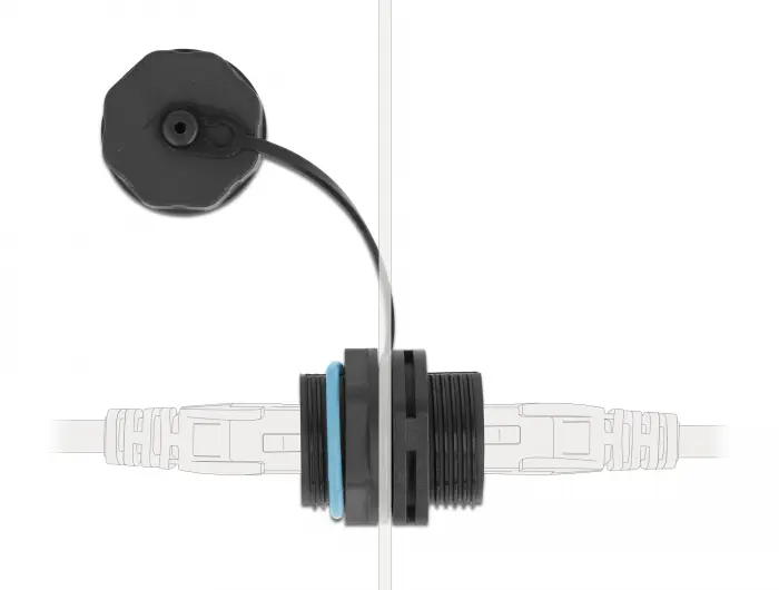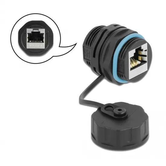 Con questo accoppiatore RJ45 c'è un ingresso cavi impermeabile da un lato che è protetto da un anello di tenuta in silicone e l'altro lato può essere chiuso con il cappuccio di protezione.