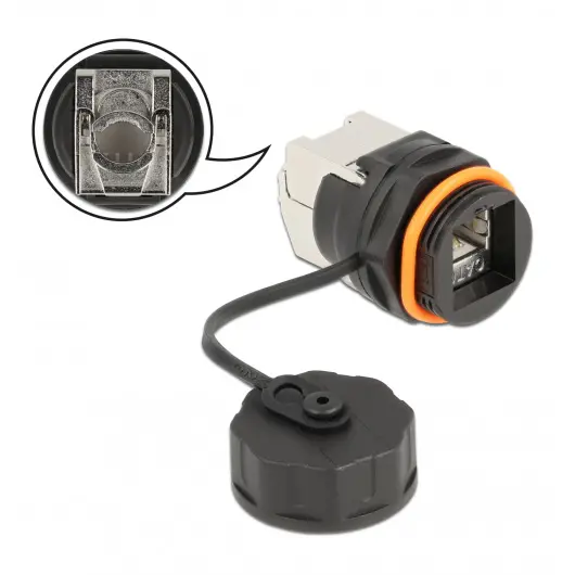 DELOCK - CAPPUCCIO DI PROTEZIONE IP68 Questo connettore per cavi Delock può essere utilizzato per collegare un cavo di rete a una porta RJ45 femmina. L'alloggiamento con anello di tenuta e tappo di protezione a vite protegge la femmina RJ45 dallo sporco e dall'umidità ed è ideale per l'uso all'aperto.