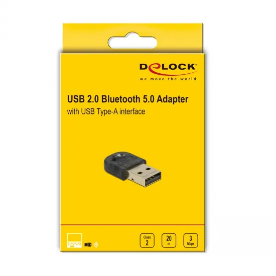 Questo adattatore USB 2.0 Bluetooth Delock consente una comunicazione senza fili o un trasferimento di dati ad es. tra due PC o un PC e un telefono cellulare o una rete.