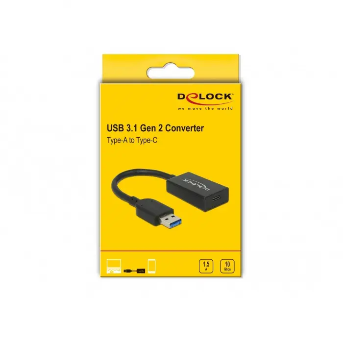This converter by Delock enables the connection of a device with USB Type-C™ male to a USB Type-A female port.
