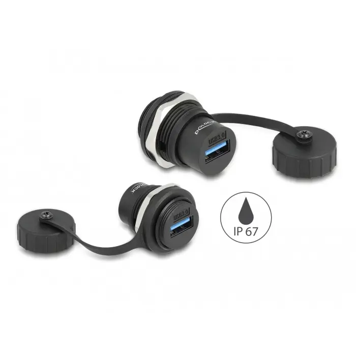 Delock Connettore USB 3.2 Gen 1 Tipo-A da incasso con cappuccio protettivo IP67 antipolvere e impermeabile