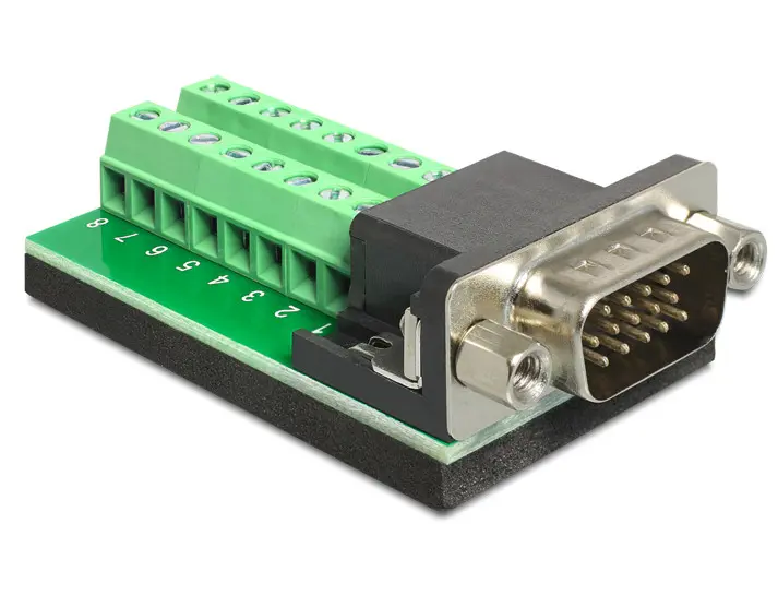 This VGA to Terminal Block adapter is made for special industrial application e.g. for connecting single wires with open cable heads.