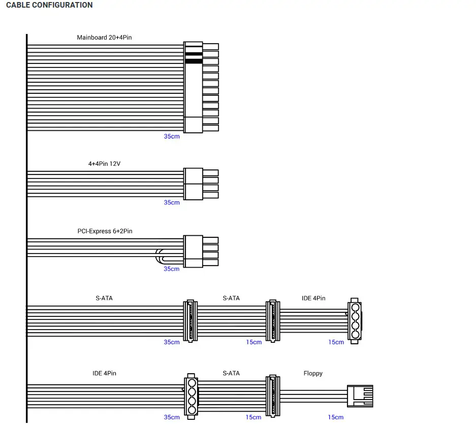 The PSU convinces due to several connection options. It also offers a PCIe 6+2pin plug to supply a separate graphics card with higher power consumption.