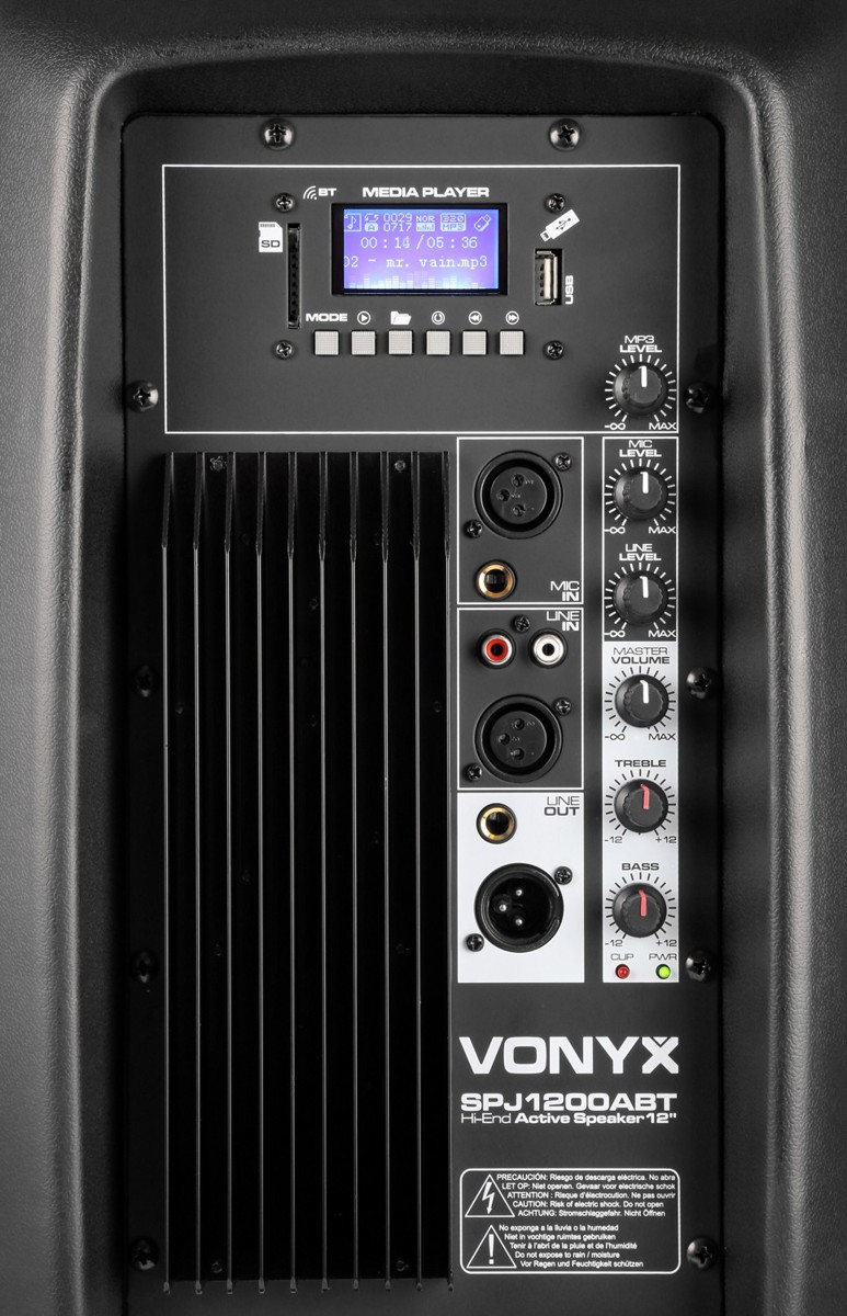 Diffusore Amplificato da 12" e potenza di 600W con cabinet in ABS con griglia metallica. il suo potente woofer ed il driver a compressione dinamico consente un’eccellente riproduzione del suono. Presente un’uscita di linea che permette il collegamento di più diffusori in cascata. Inoltre la, tecnologia bluetooth, e la USB player mp3, la rendono estremamente versatile e adatta ad utilizzi PA come: bar, ristoranti, piccoli teatri, palestre, e sale di conferenza. Caratteristiche: • Amplificatore da 600W con crossover integrato. • Woofer da 12" estremamente potente per i suoni medio-bassi • Ingresso di linea e microfono con controllo alti e bassi. • Possibile installazione in cascata di più diffusori. • Driver ad alta potenza a tromba piezoelettrico • Bicchiere da 35mm per installazione su palo • Struttura in ABS leggera e resistente agli urti • Fornito singolarmente • Ricevitore Bluetooth • lettore mp3 con ingresso usb/sd • lettore mp3 con ingresso usb/sd • Potenza massima: 600w • Potenza di uscita: 300w • risposta in frequenza: 50hz - 18khz • Spl max: 122db • Woofer: 12" • Tromba di diffusione per il tweeter • Dimensioni (A x L x P): 585 x 295 x 375 mm • Peso 11.6 kg