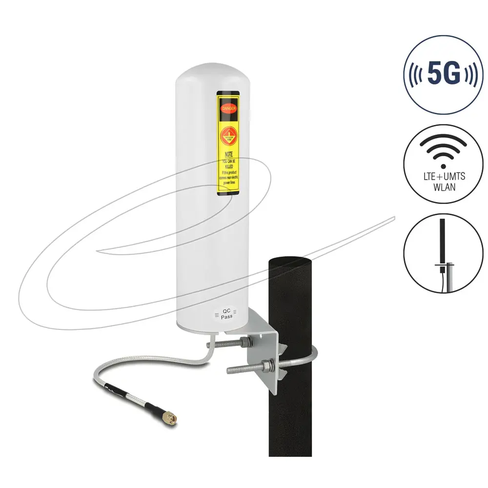 Delock Antenna 5G LTE con SMA maschio 3 - 5 dBi omnidirezionale muro e asta esterna di montaggio bianca