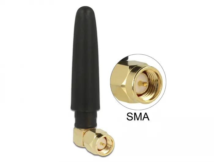 Delock LTE Antenna SMA maschio 90° 2 dBi omnidirezionale fissata nero -- Questa antenna Delock consente l'uso di varie bande LTE all'interno e all'esterno.